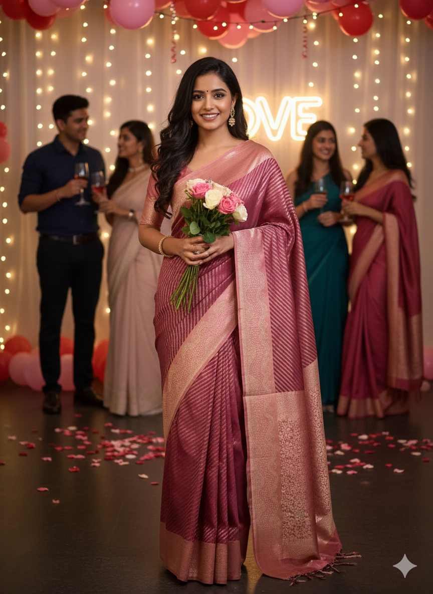 Pastel pink Kanchipuram Silk Saree- Banarasi style inspired