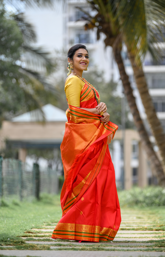 | Border Type | Silk thread and Gold Zari annapakshi border |